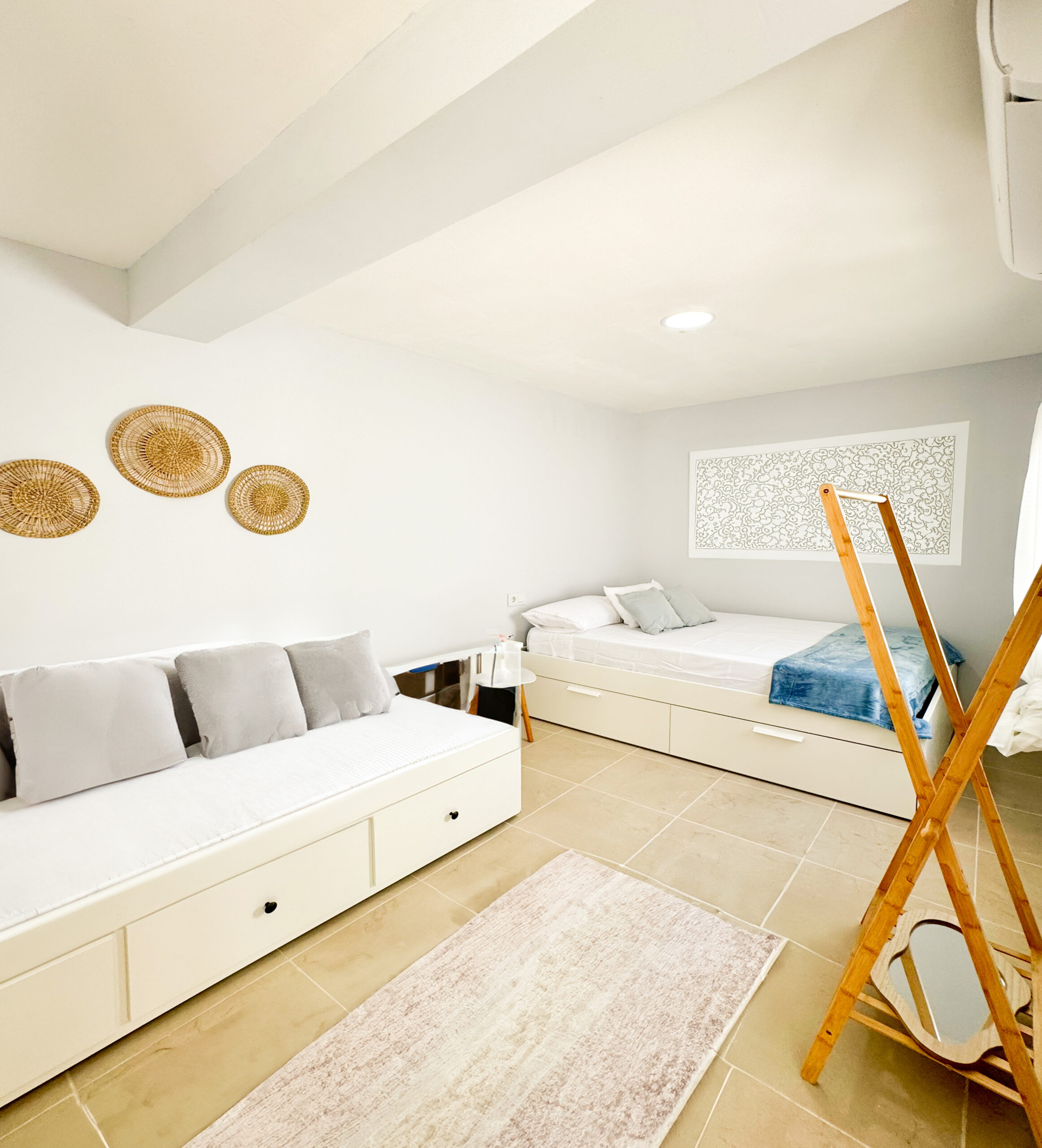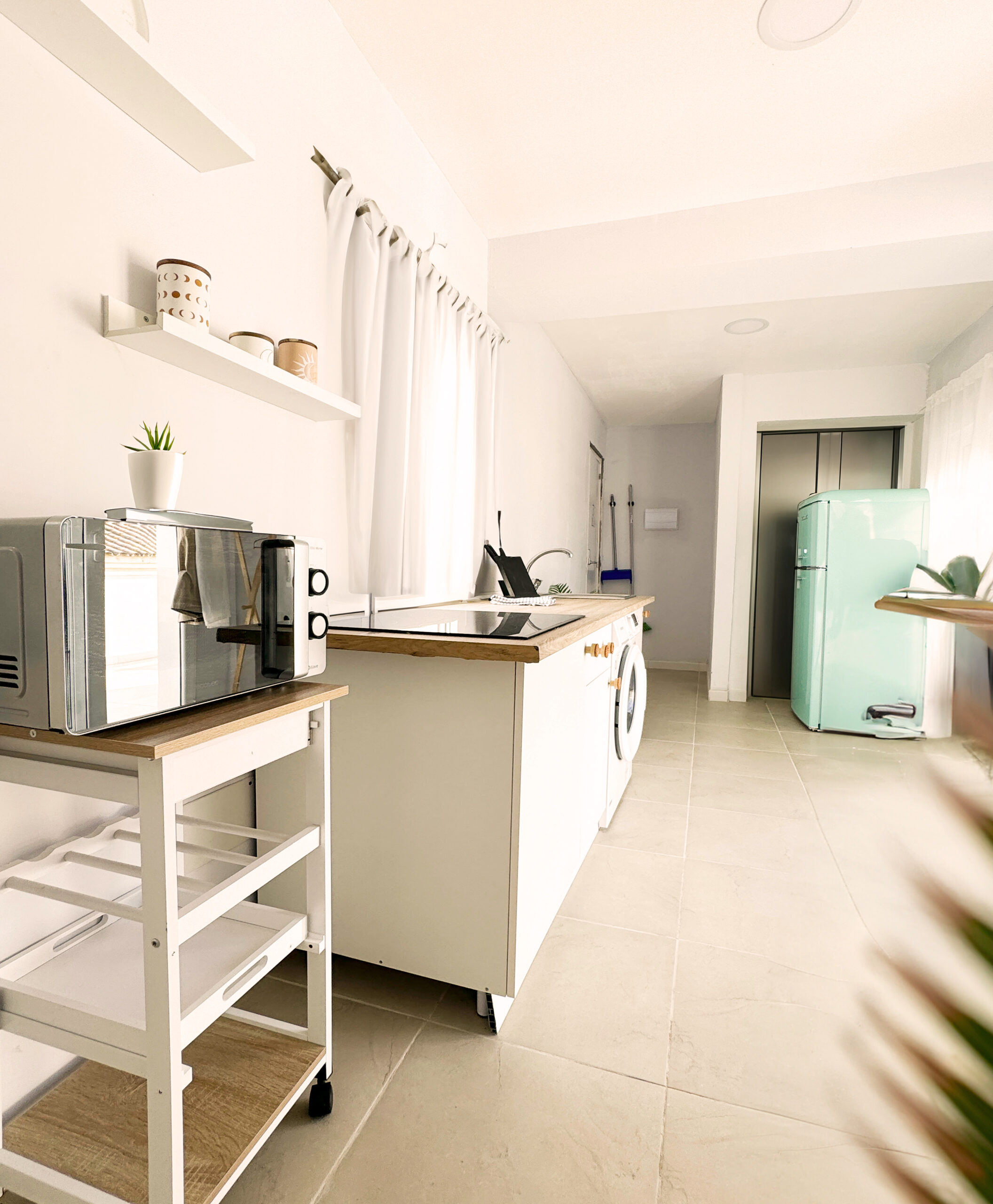 Aunque el ático tiene su propia cocina privada, también tendrás acceso a las cocinas en las zonas comunes, donde encontrarás una amplia cocina comunitaria equipada con todos los utensilios necesarios, así como tres lavadoras y una secadora para utilizar durante tu estancia. Además, podrás relajarte tomando un café en nuestro patio común, acompañado del relajante sonido de una cascada de agua que llena el ambiente.