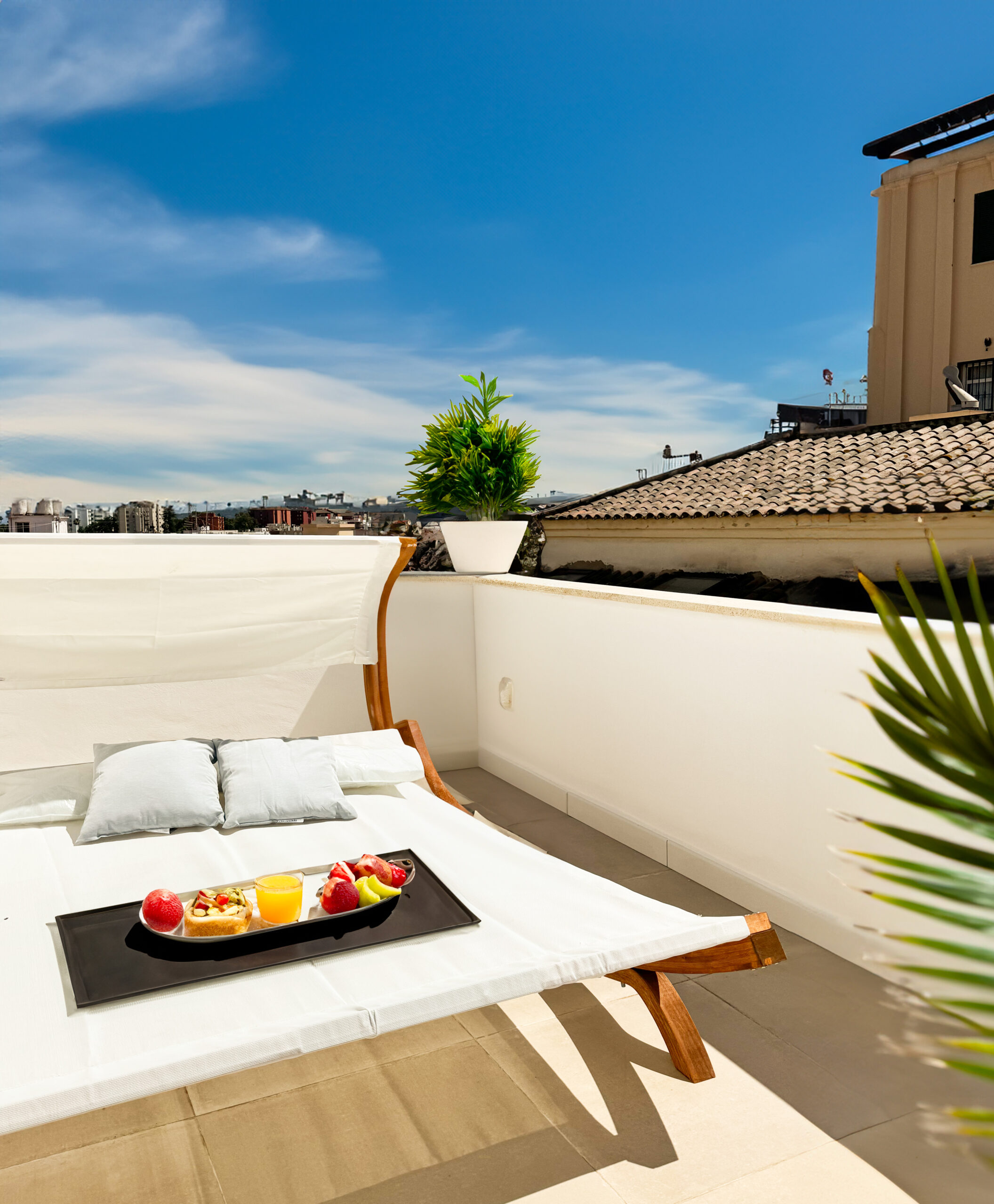 Disfrutarás de un espacioso y moderno ático con una amplia terraza que incluye una cama balinesa y una gran mesa para aprovechar al máximo las impresionantes vistas al campanario de la Iglesia. El ático está equipado con una hermosa cocina completamente dotada de utensilios, frigorífico y lavadora, además de un acogedor salón con sofá cama. El dormitorio principal cuenta con una cómoda cama de matrimonio y un baño privado equipado con ducha y secador de pelo. Todas las estancias disponen de WIFI gratuito, TV de pantalla plana vía satélite, cafetera de cápsulas, plancha y utensilios de limpieza.